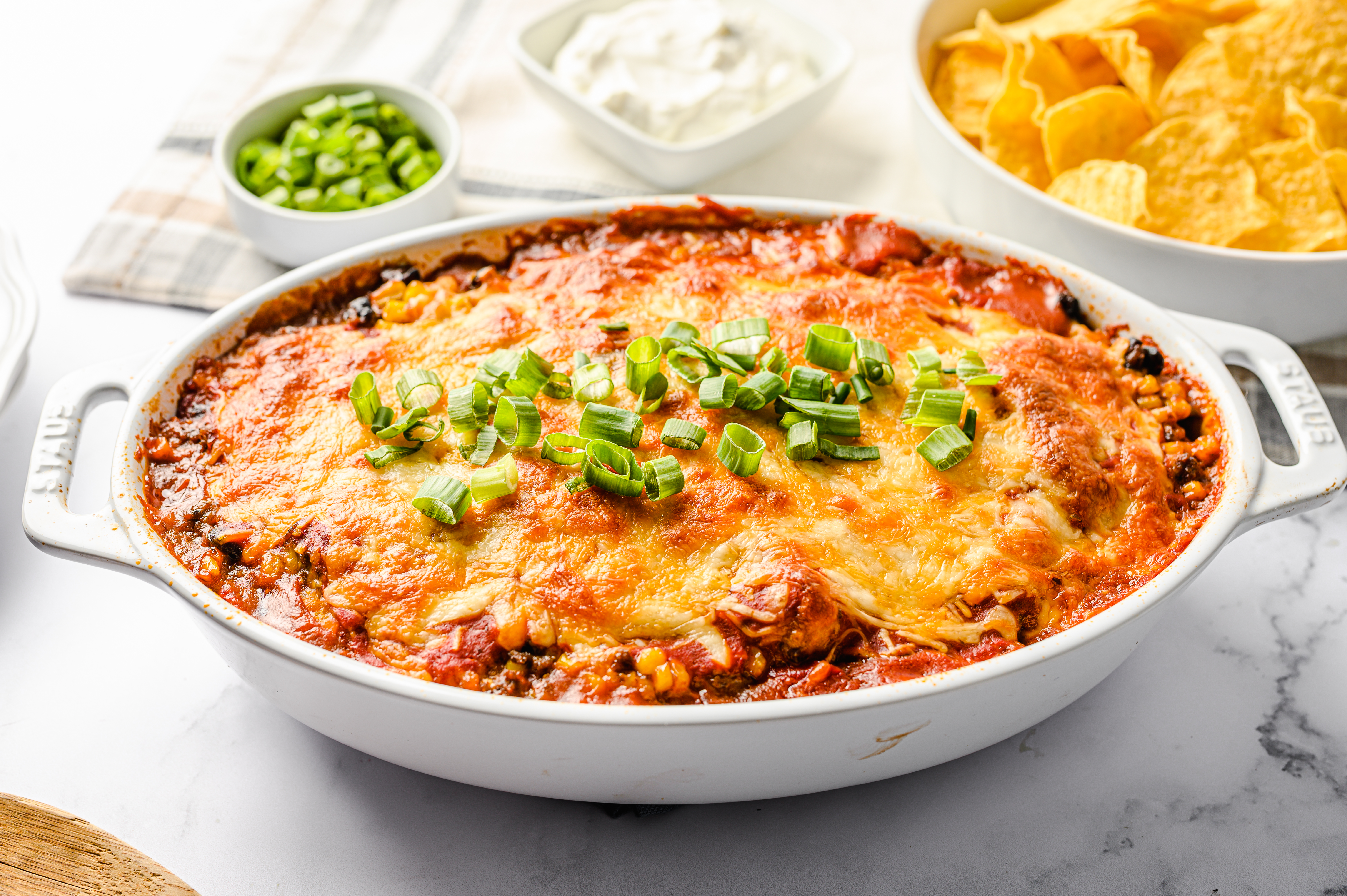 Step 12 -Top with the sour cream and scallions and serve.