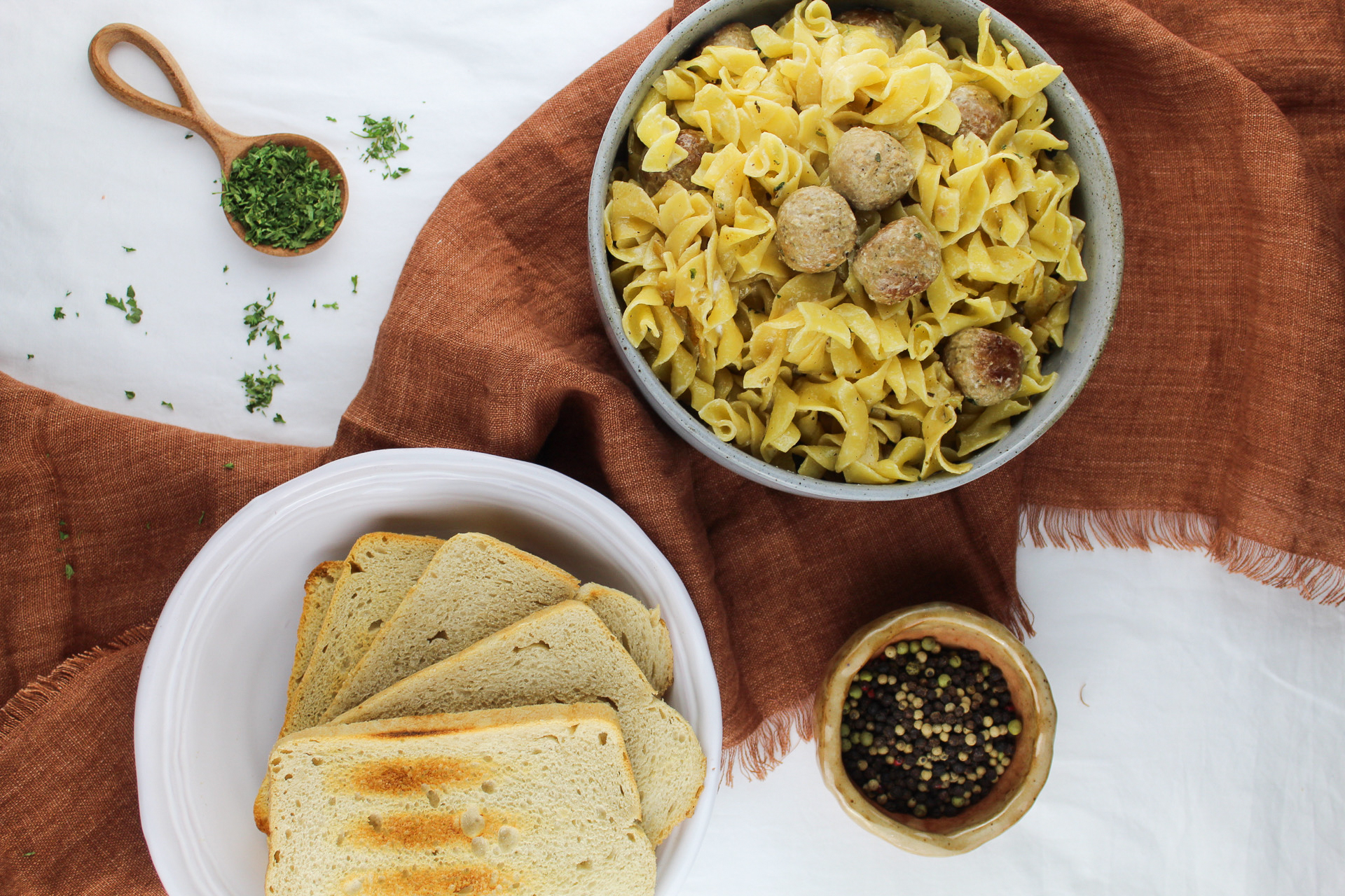 Classic, rustic, restaurant-quality cuisine in half an hour or less? It really can't get much better than that! Bistro Stroganoff takes a world favorite and makes it even more accessible by using Italian-spice infused, tender, savory meatballs as the protein. The egg noodles are as buttery as ever, perfect for carrying all of that deliciously beefy and creamy sauce to your taste buds. It's simple and elegant and oh-so-tasty all at once! Bring the restaurant to your dining room with this Bistro Stroganoff!