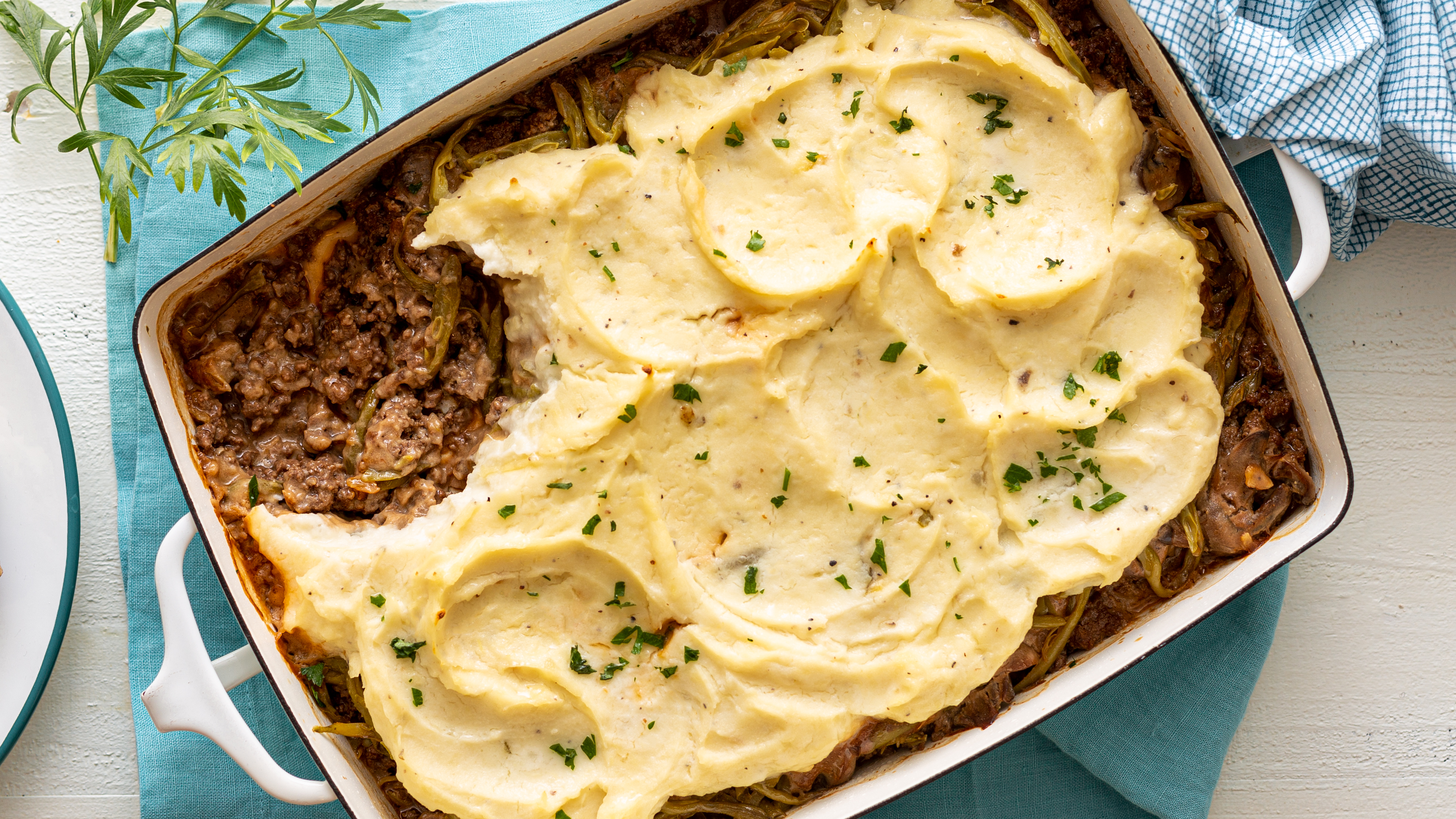 Fun fact: the classic Salisbury Steak hails from Missouri. In that spirit, here's a casserole-take on that same classic! Classic Missouri Dinner Bake layers onion-infused beef with a wonderfully savory and tangy gravy, and then adds in green beans for a refreshing, balancing flavor contrast. Oh, and on top? Fluffy mashed potatoes, of course! Classic Missouri Dinner Bake is called a classic for a reason!
