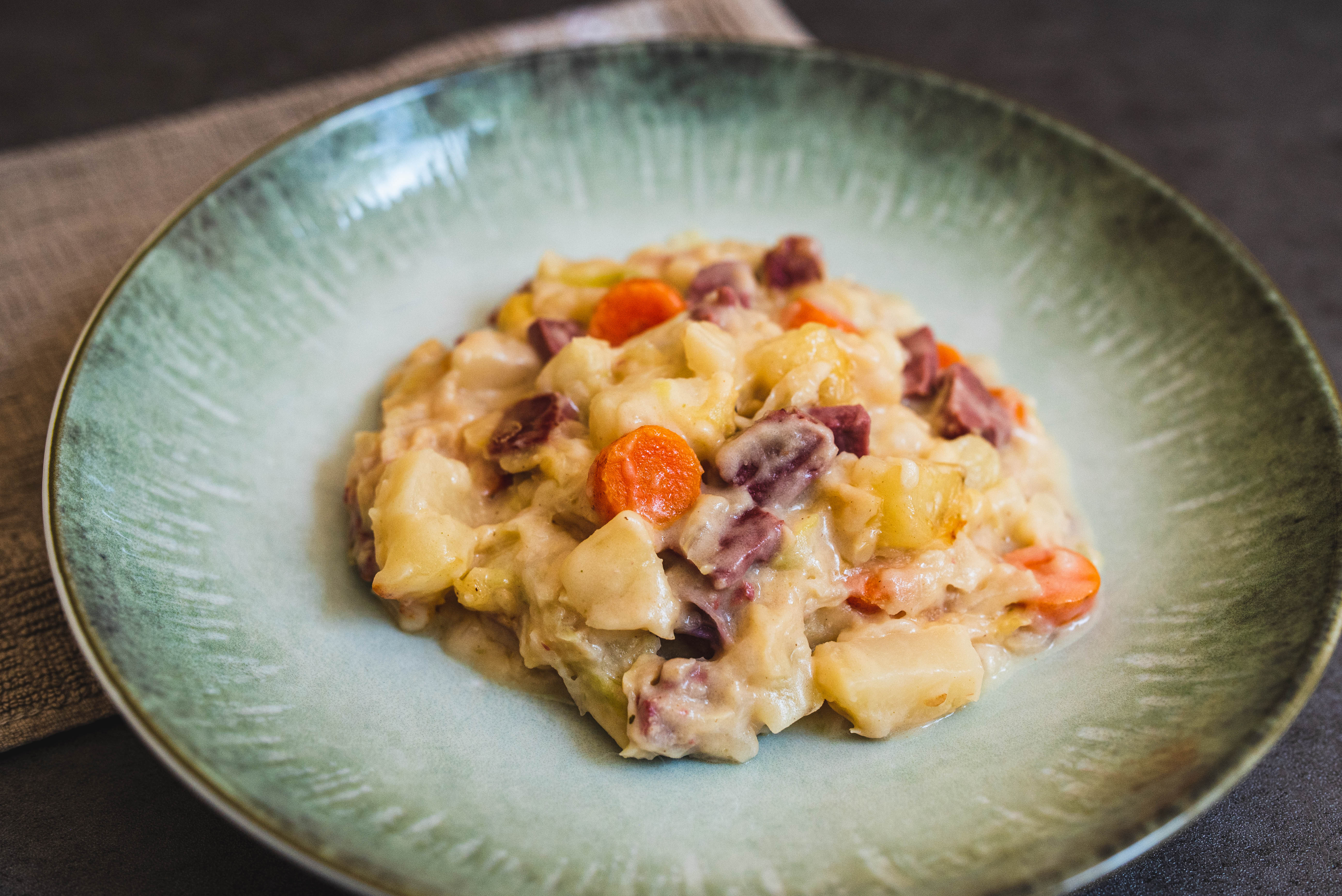 If you're feelin' a little Irish, this Corned Beef Cabbage Bake is the luckiest choice for you! Loaded with tender potatoes, garden-fresh carrots, tangy onion, some beloved cabbage, and juicy, hearty corned beef, you'll feel like you've struck a pot of gold with this one. It's quite the simple dish to cook up, too, which adds a few more rainbows to this glorious meal. Cash in your luck with some Corned Beef Cabbage Bake!