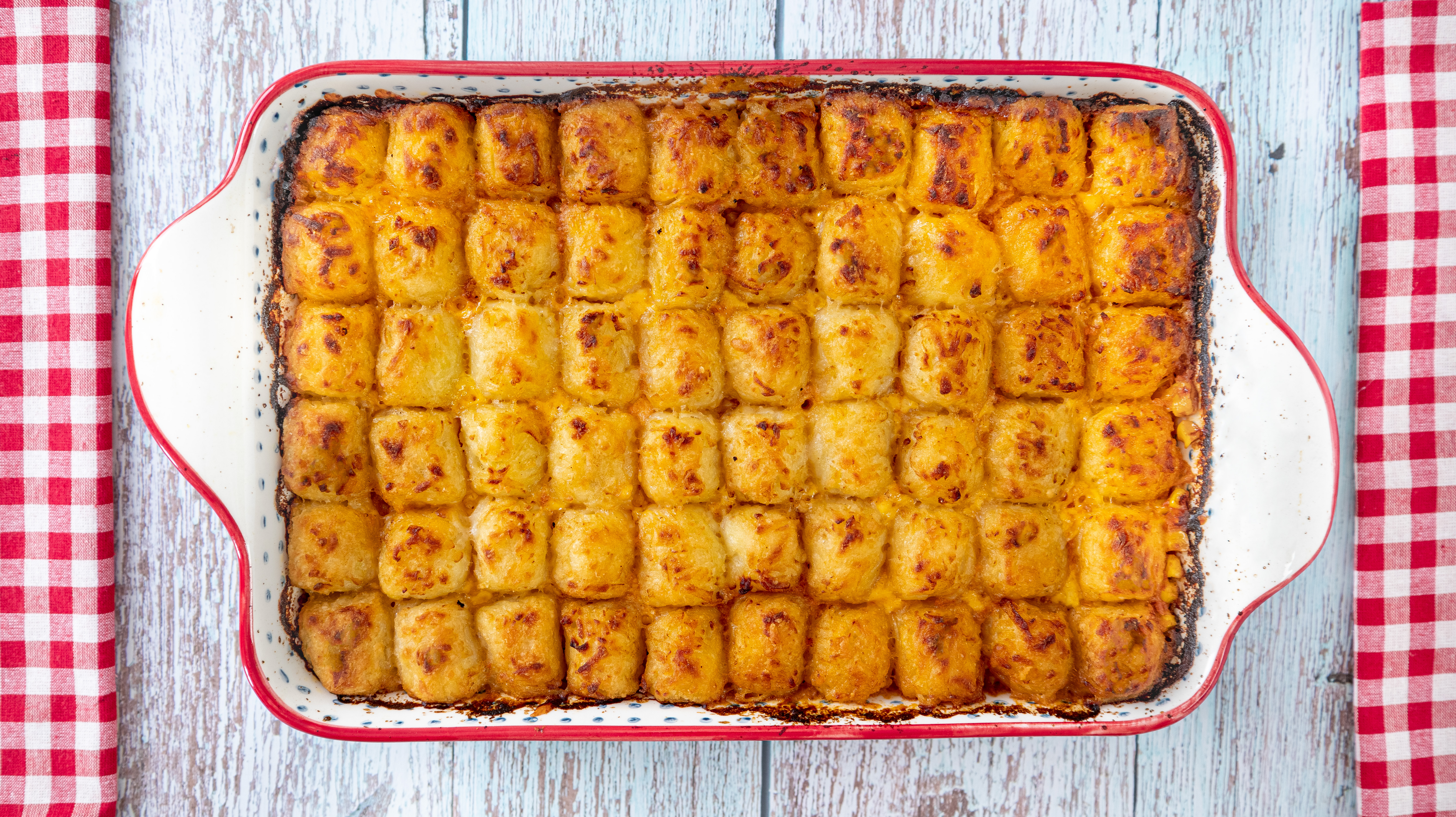 Well, partners, looks like dinnertime's come around the bend again. Best go on home and whip up something to get your mind off the dusty trails. That'll be the Country Cowboy Casserole we reckon: a meaty, beefy, creamy filling underneath layers of good-old-fashioned corn and cheese and a crispy, tender-on-the-inside tater tot crust. No matter what cattle rustling turmoil might be going on outside, there's always a good day to be had with Country Cowboy Casserole on your dinner table.