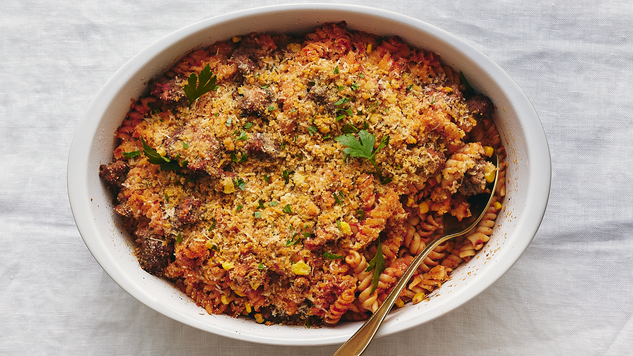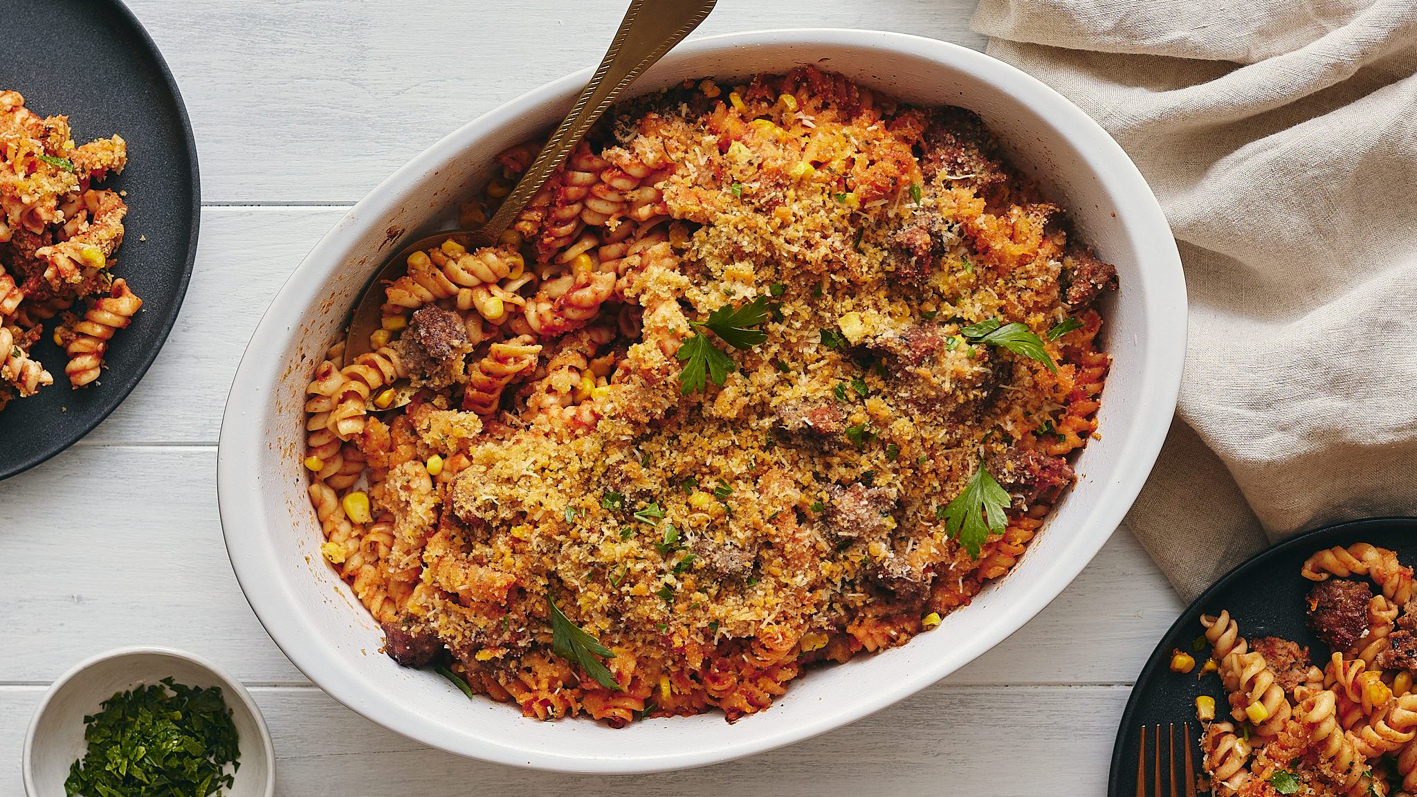 Everyone has their own ideas about what to do with leftover mashed potatoes, but what about another leftover? What about the humble meatloaf? Well, the Day 2 Bake knows how to dazzle even with yesterday's dinner! The tender, savory leftovers serve as meatballs for a rich, herbaceous tomato sauce and pasta perfectly shaped to capture all the flavors! On top is a fresh, crunchy coating of breadcrumbs and melted cheese. Spaghetti and meatballs may not taste quite as exciting once you know that the Day 2 Bake can make meatloaf into something even more special!