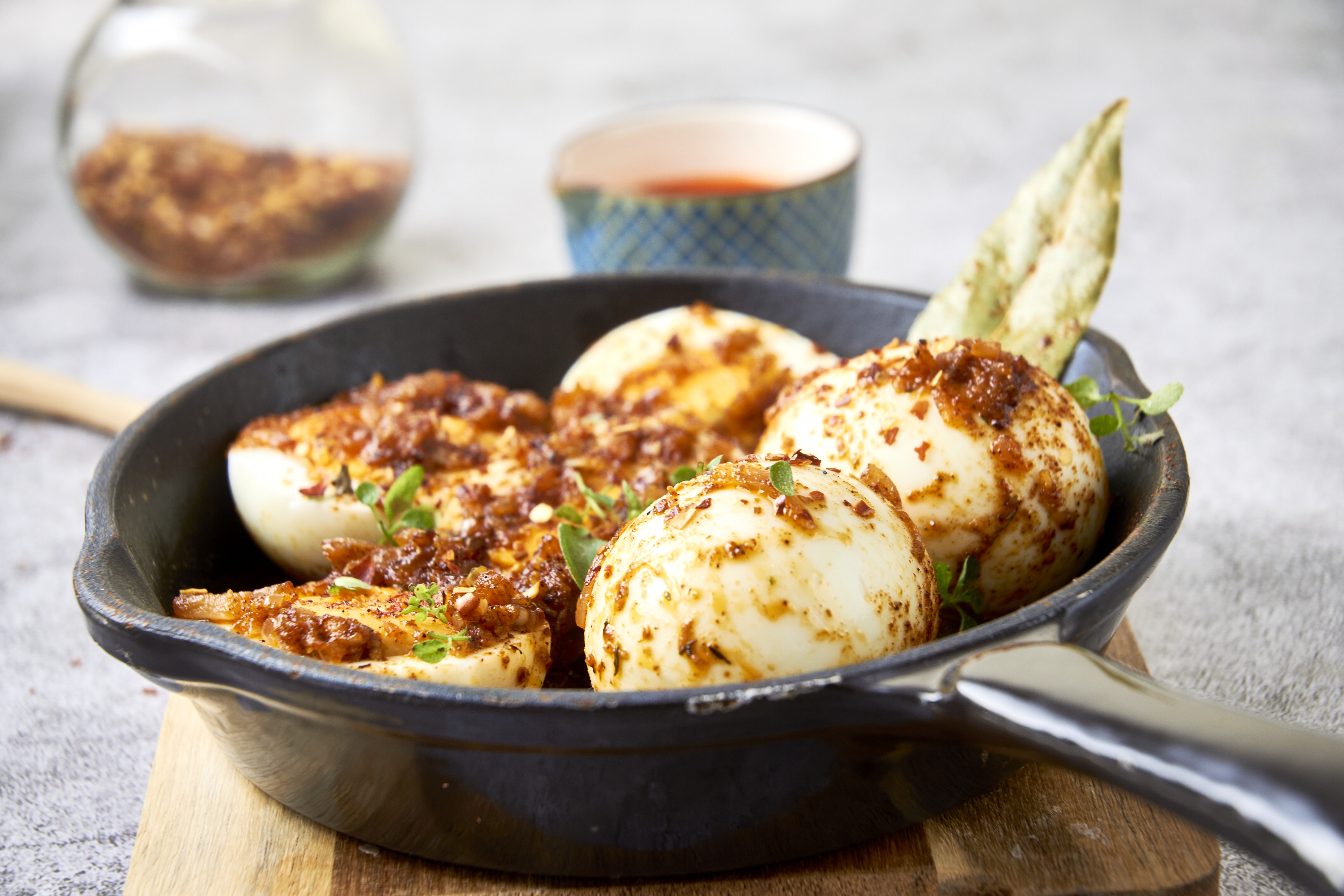 This is an unusual way to enjoy hard-boiled eggs, but it might just be the best! These hearty eggs are coated in a spicy, zesty, aromatic sauce with hints of smoky sweetness and lemon-y tang! You can serve up Egg Boil for brunch or take them with you for a quick but memorable bite on the go! Why would you go back to plain, old hard-boiled eggs after trying this?