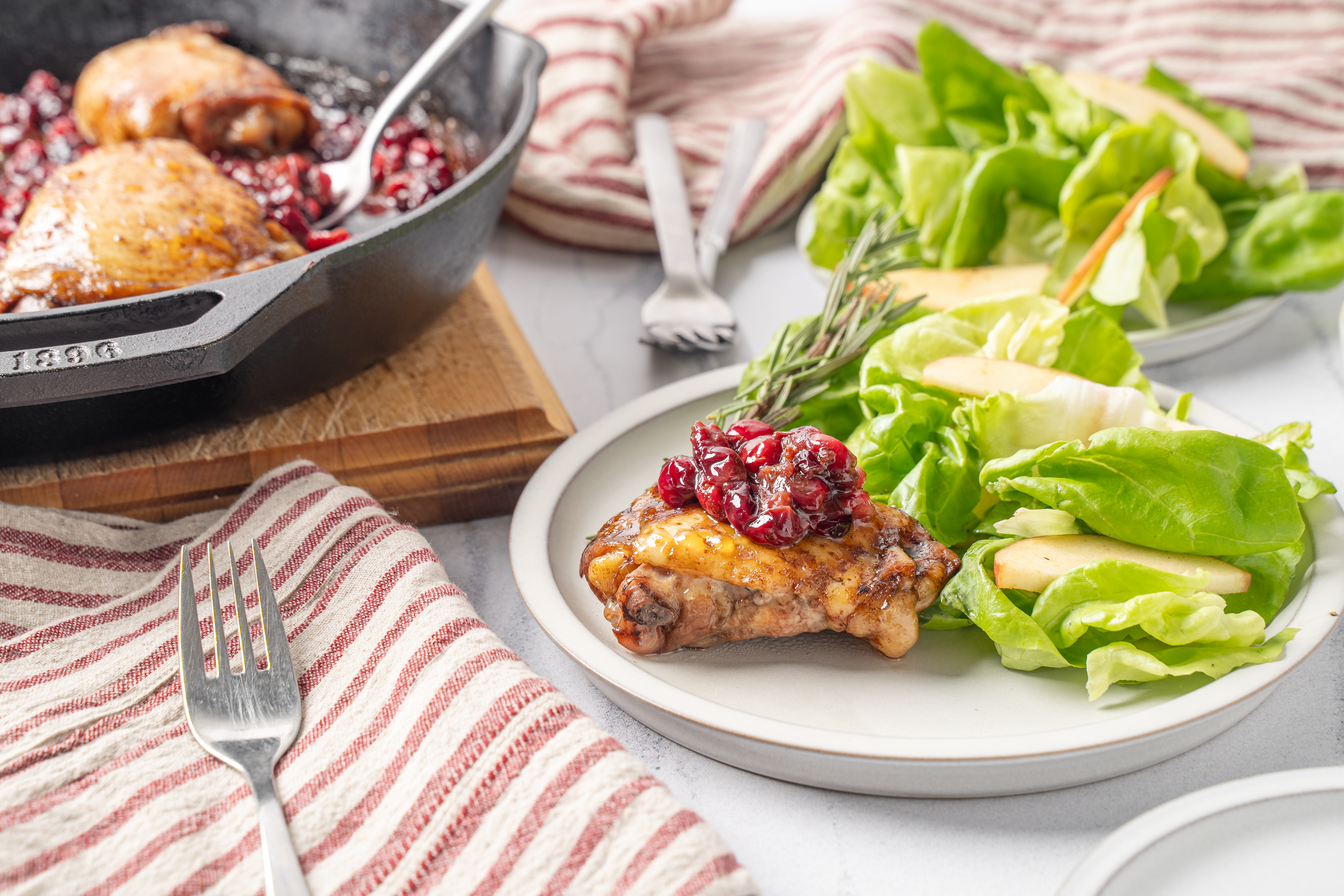 After you've decked the halls and you're feeling extra jolly ('tis the season to be), you need a dish so festive and tasty that it'll make you want to sing! Fa La La Chicken will have you humming the happiest Yuletide carol at first glance. This merry munch puts juicy, golden chicken thighs in a rosy and sweet, yet tart cranberry marinade to create a main that's as beautiful as it is tasty. Only the most joyous of dishes can be served this time of year, and Fa La La Chicken will have everyone striking the harp and joining the chorus! Sing along and dig in!