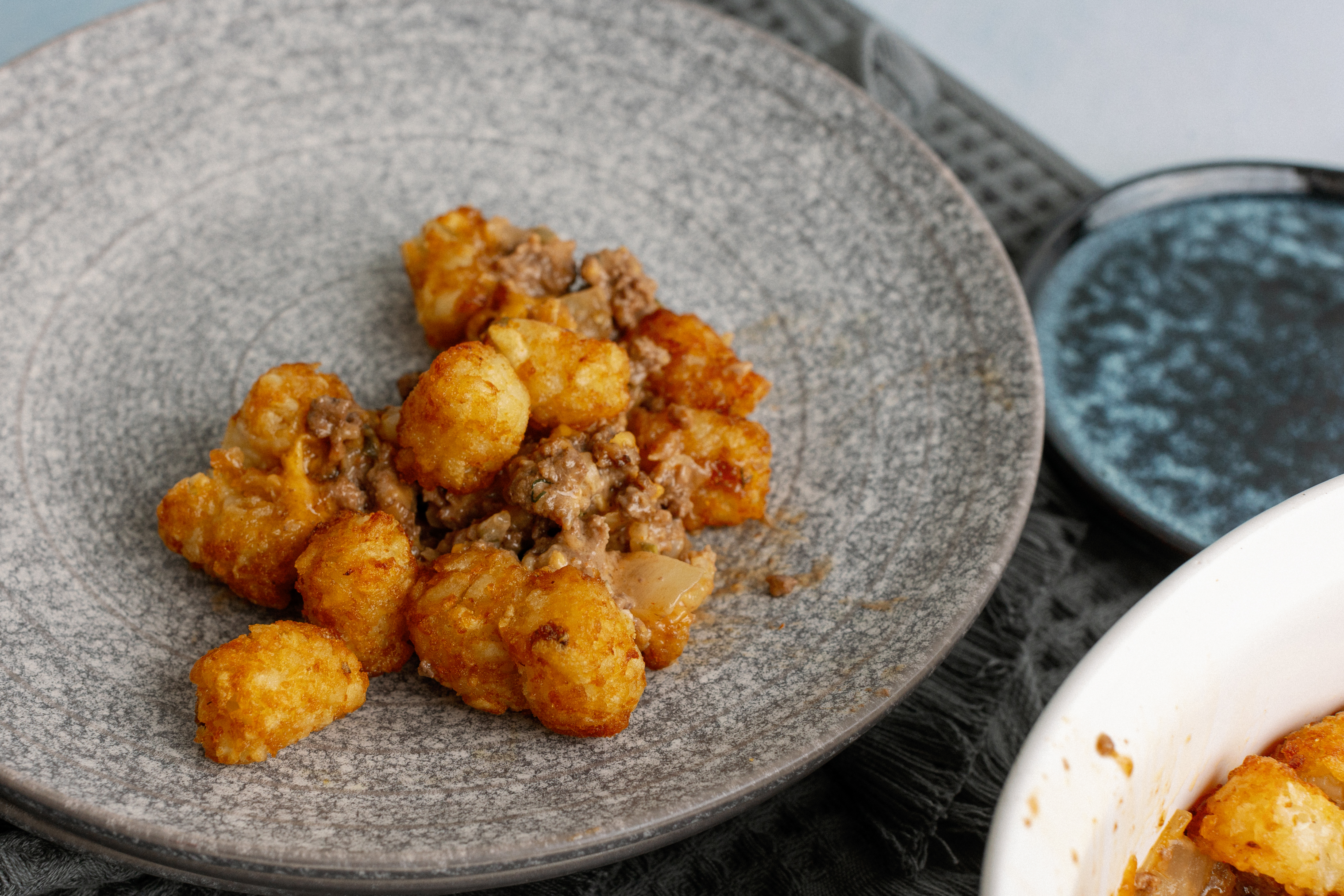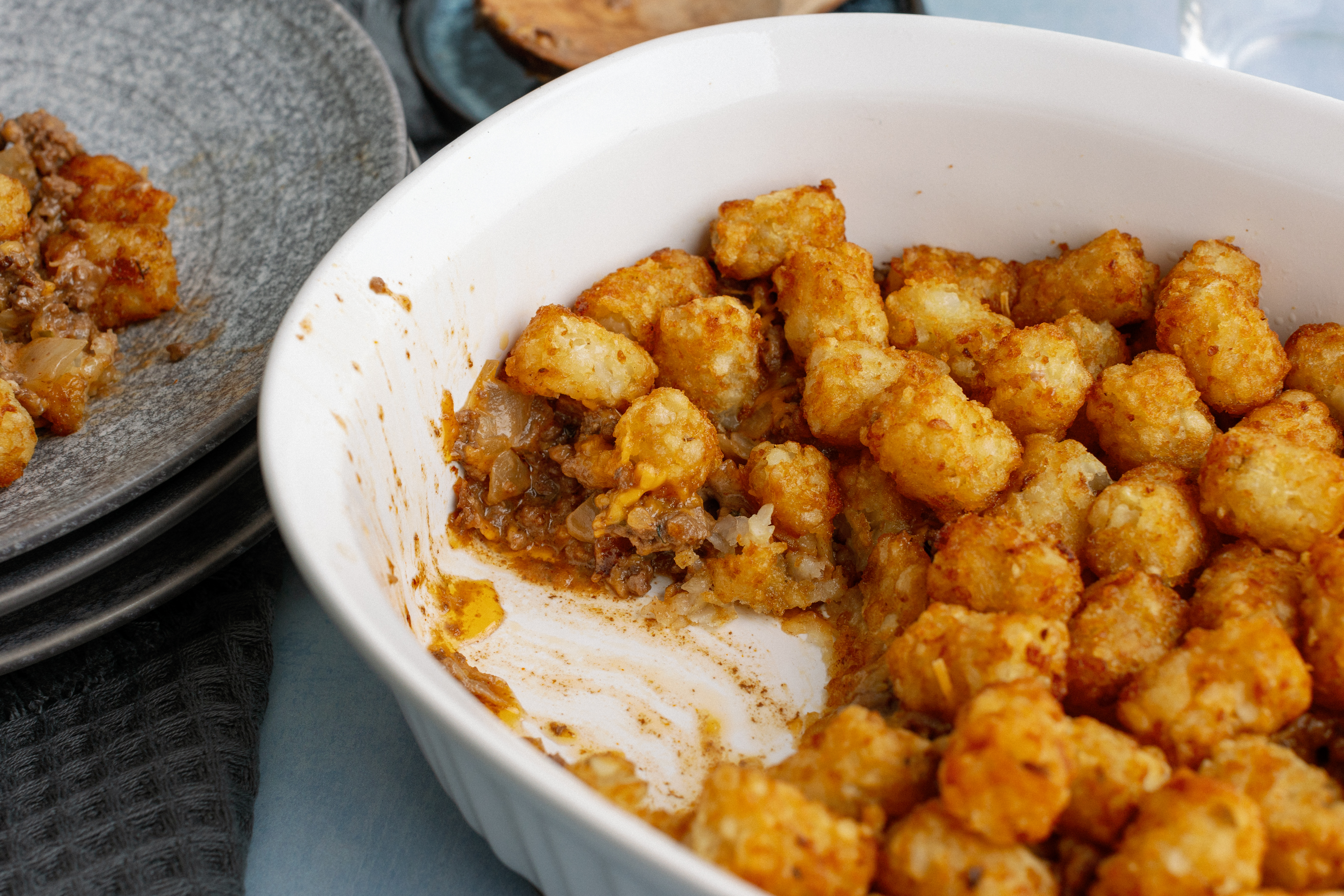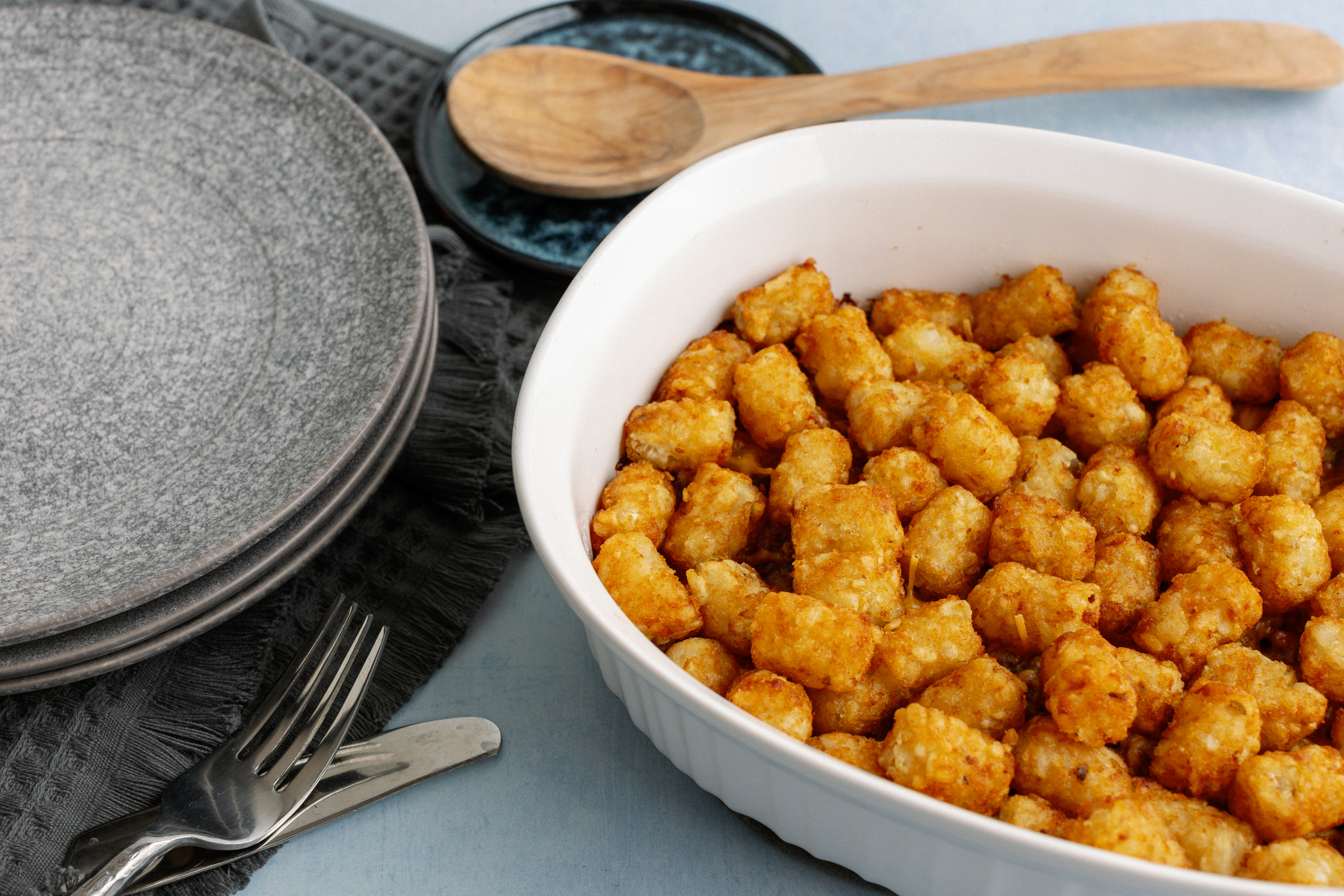 Fast food just can't compare with home cooking, but this Golden Arch Bake is the best of both worlds! The juicy, beefy filling has all the flavors of your favorite drive-thru burger, it's even topped with melted cheese and tater tots! That's right, it's burgers and fries in each bite! No need to get the car warmed up, because you're already filling your fork with the warm goodness of the Golden Arch Bake!