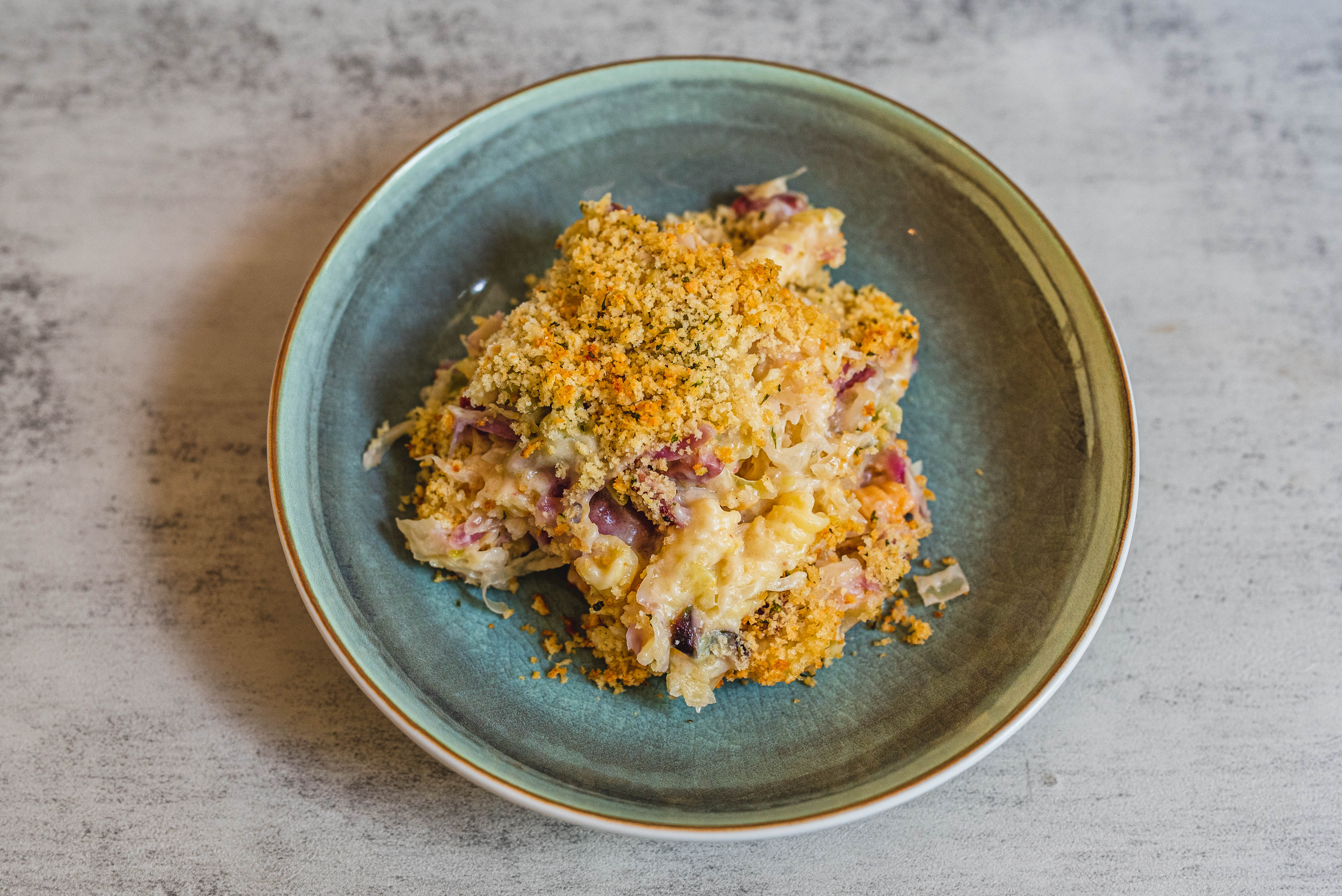 Whether you're heading to the local deli or just to your kitchen for a casserole, you know your order is the same! I'll-Take-a-Reuben Bake combines the classic blend of salty sauerkraut and savory corned beef, with tender pasta, and a creamy sauce with notes of beloved tangy mustard and melty Swiss cheese. If you love the sandwich, you know exactly what casserole to make: I'll-Take-a-Reuben Bake!