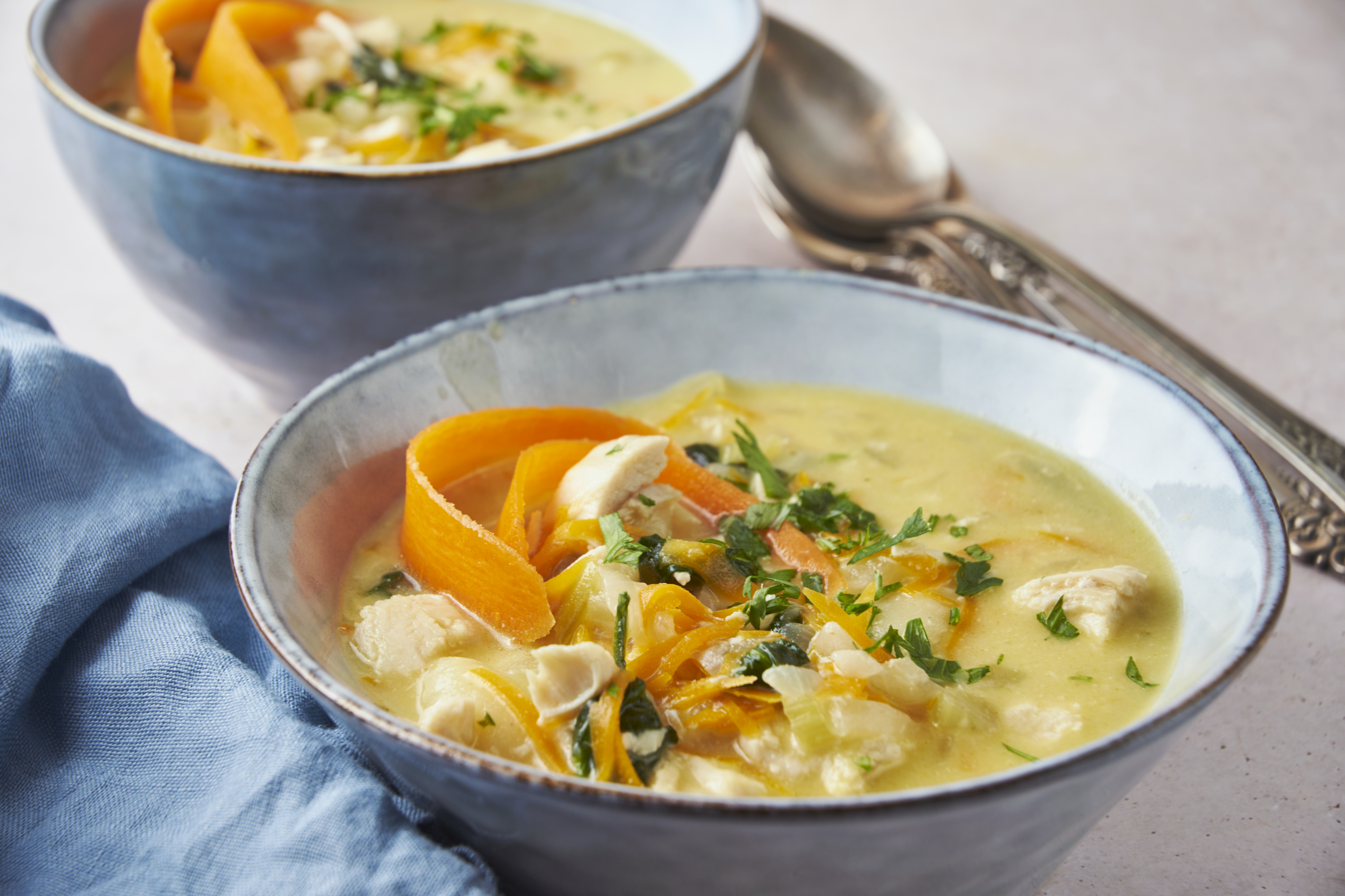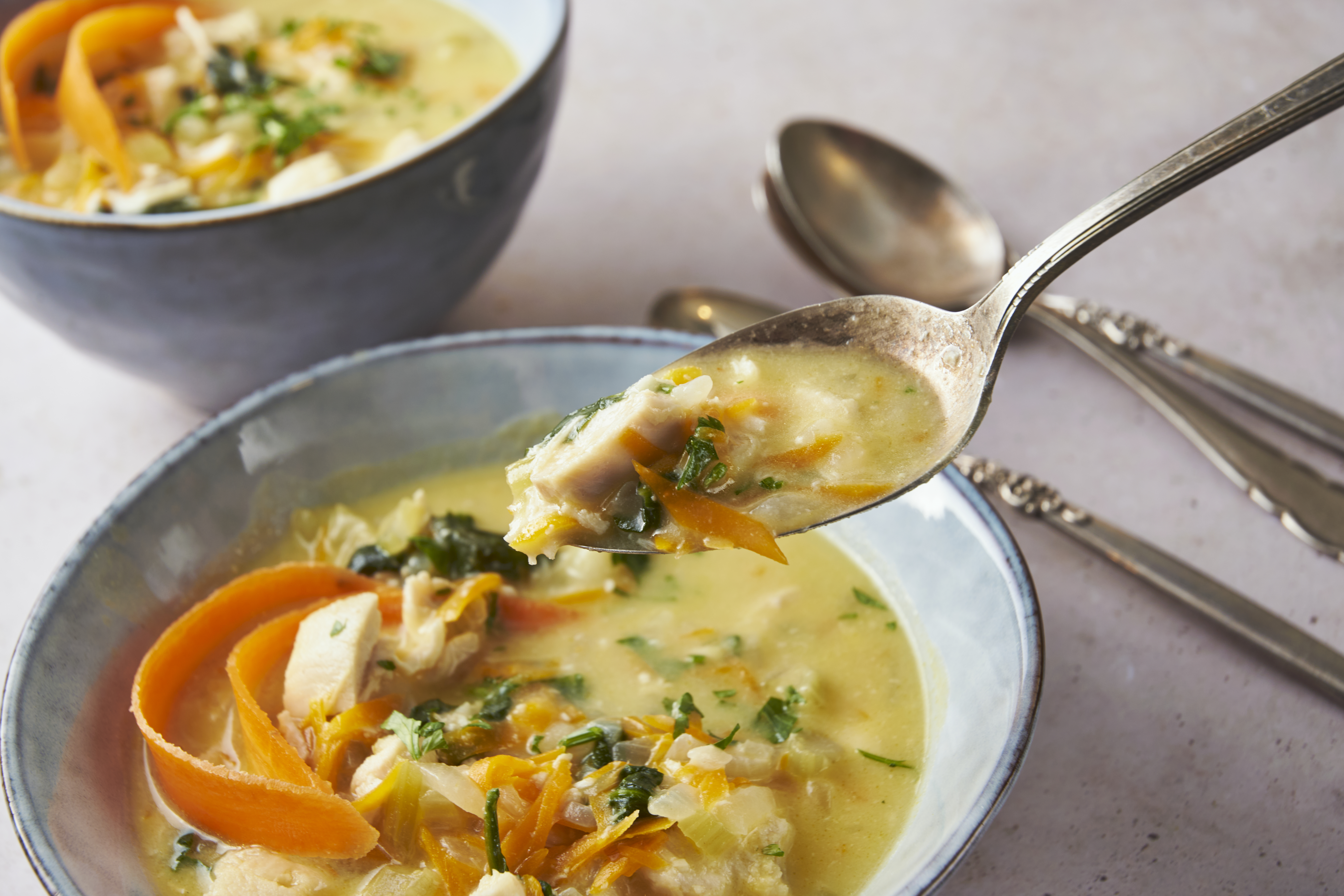 Step 8 -Serve the soup garnished with the herbs and the extra carrot peels.