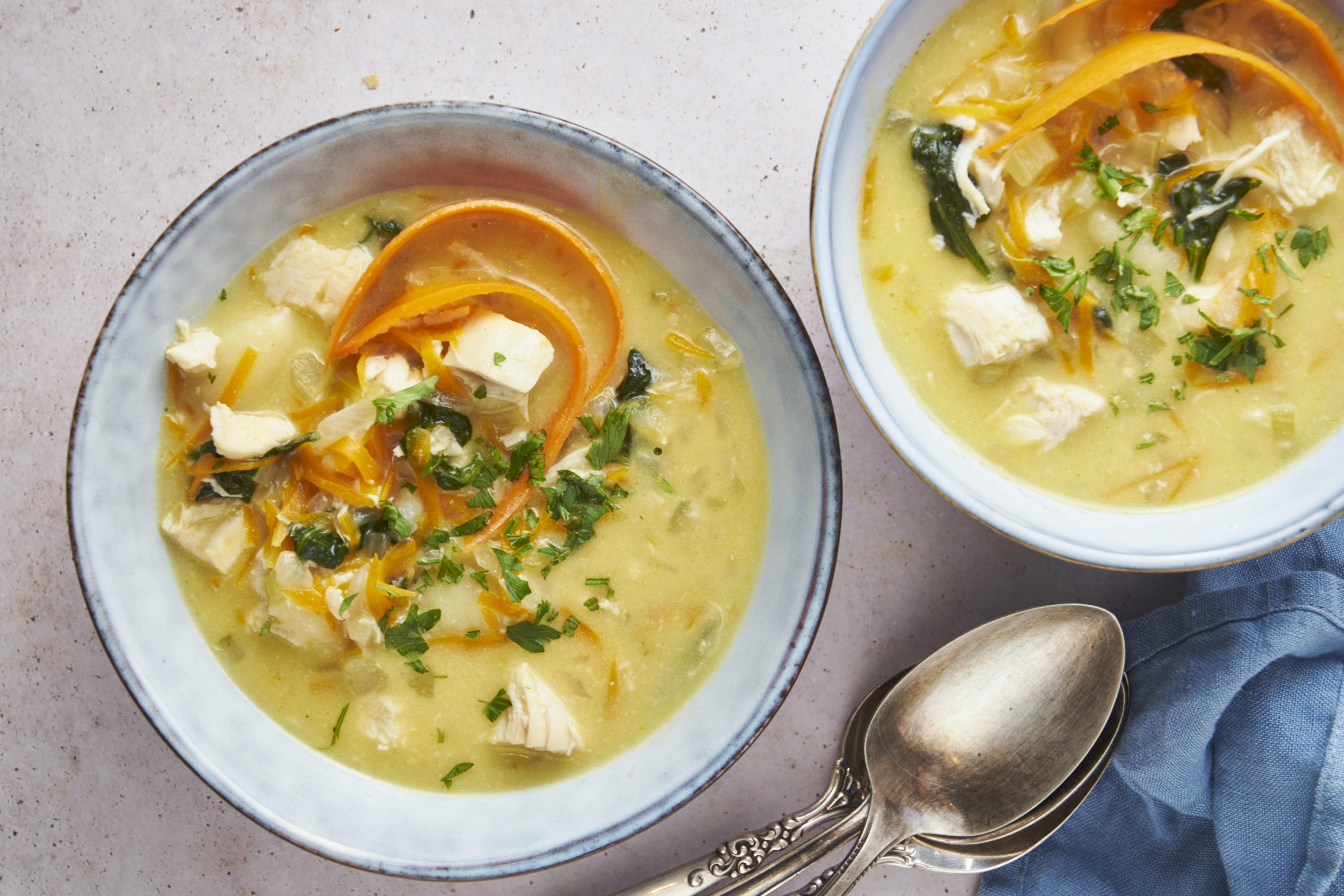 Step 6 -Add the thyme, 1 cup of the shredded carrots, the spinach, the chicken, and the gnocchi to the soup mixture and simmer until the chicken is heated through and the gnocchi floats in the broth, about 5 minutes.