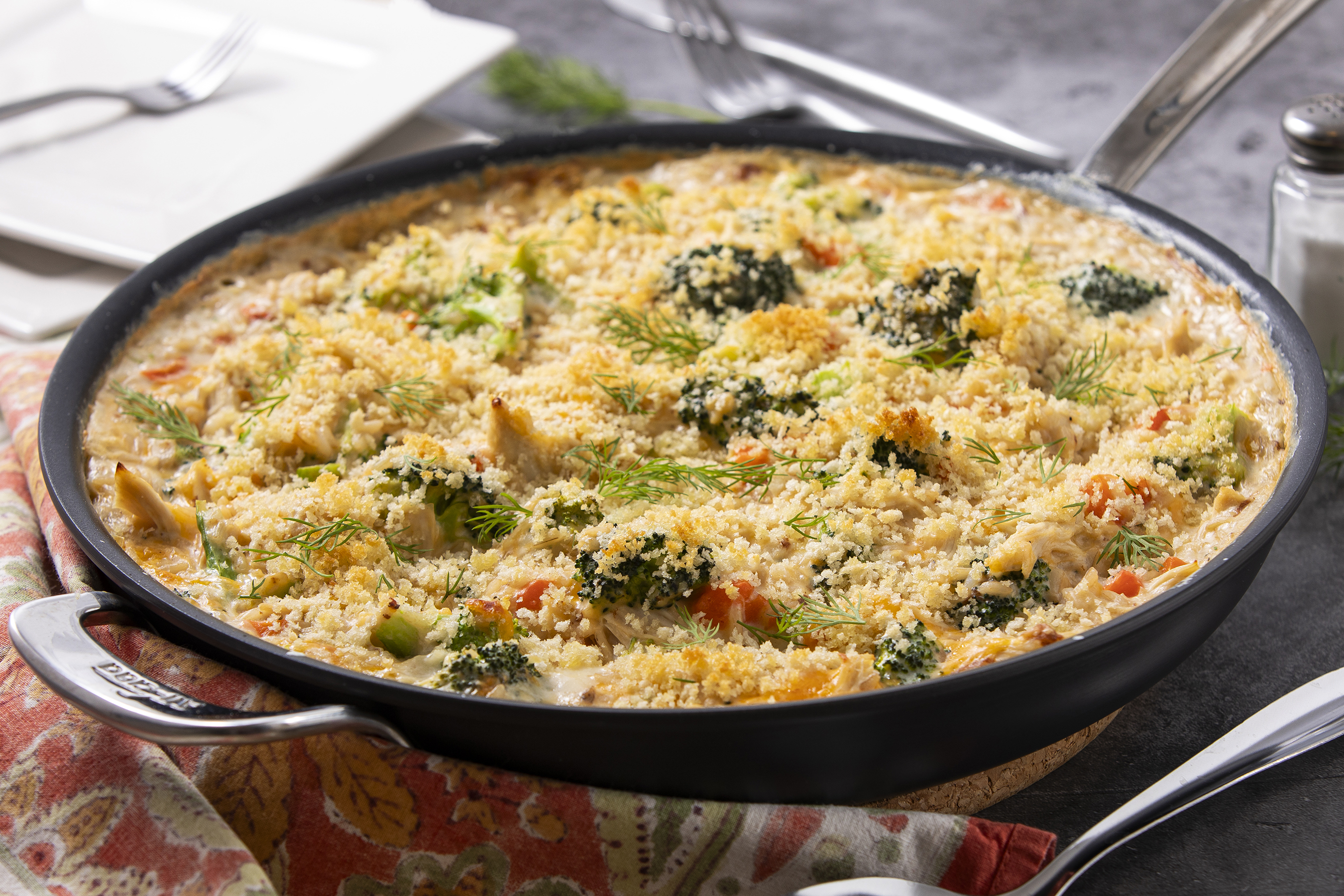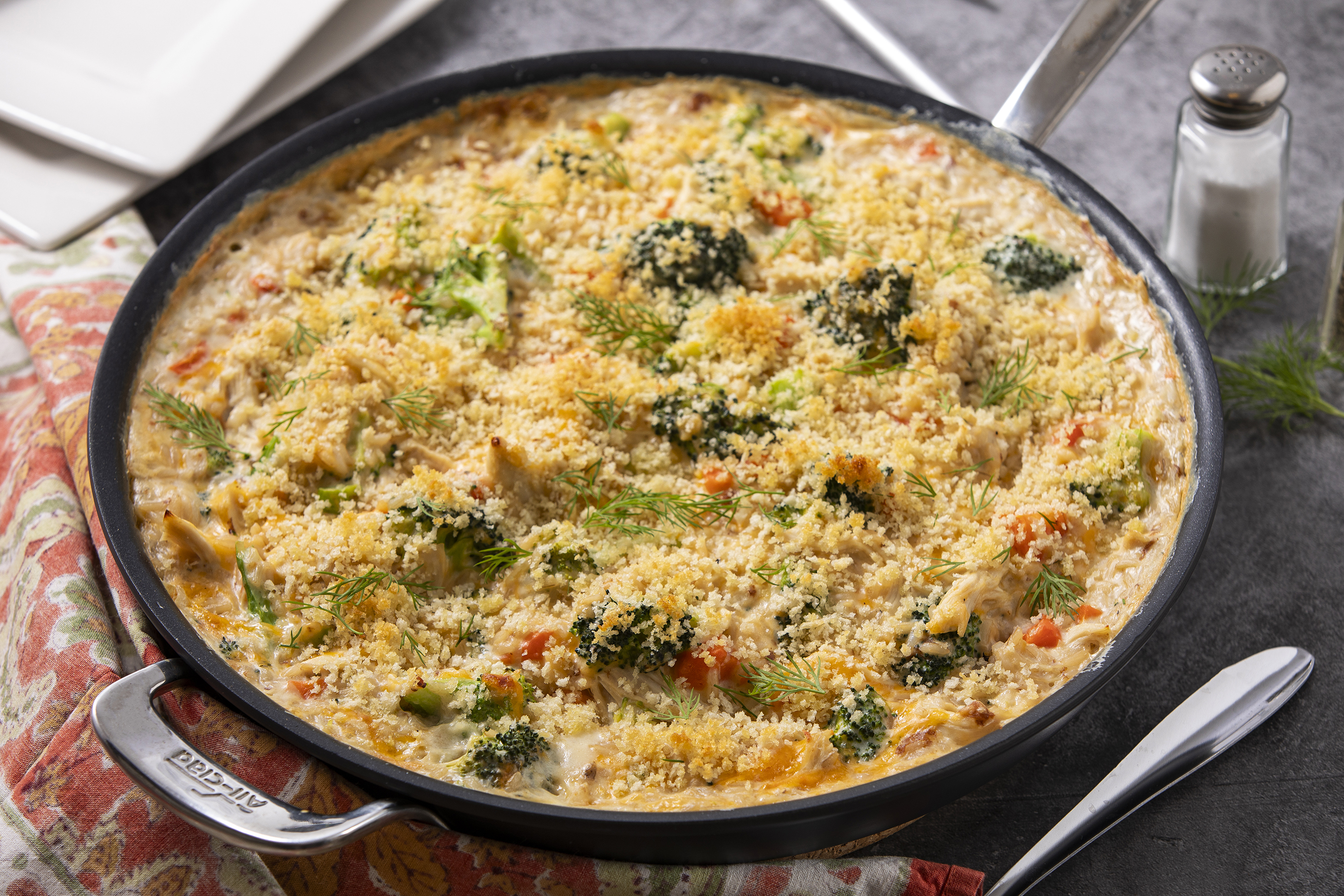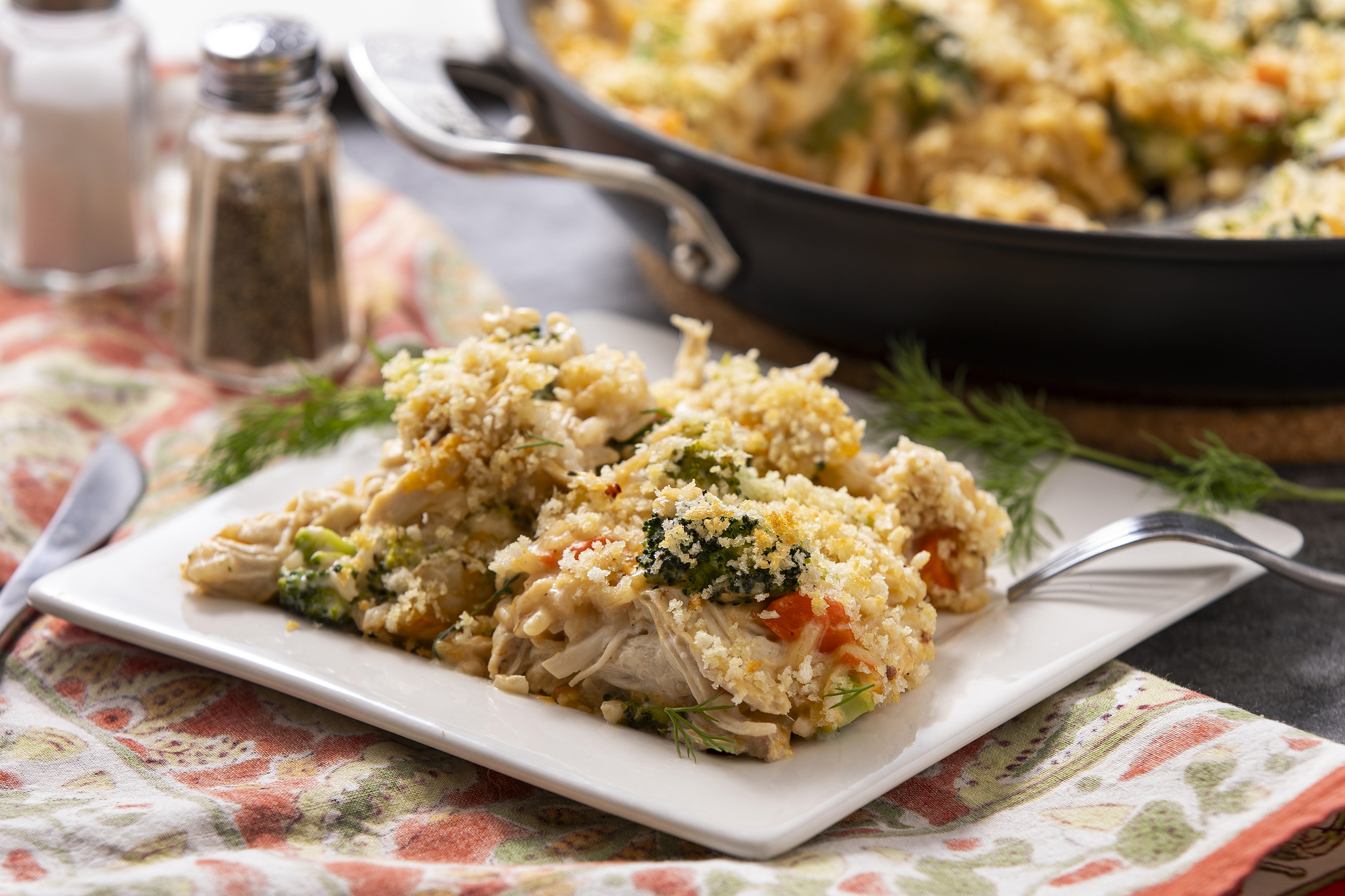 While there is chicken in the New CBR Bake, it's not a bacon ranch casserole. It's actually a chicken-broccoli-rice casserole. Still sounds pretty tasty, doesn't it? That's the point! New CBR Bake is a healthy casserole, with plenty of nourishing vegetables and nutty, healthy brown rice, that doesn't skimp out on big flavor! A little touch of hot sauce spice and a crunchy breadcrumb topping just ensure that you'll love New CBR Bake! It's new and improved!