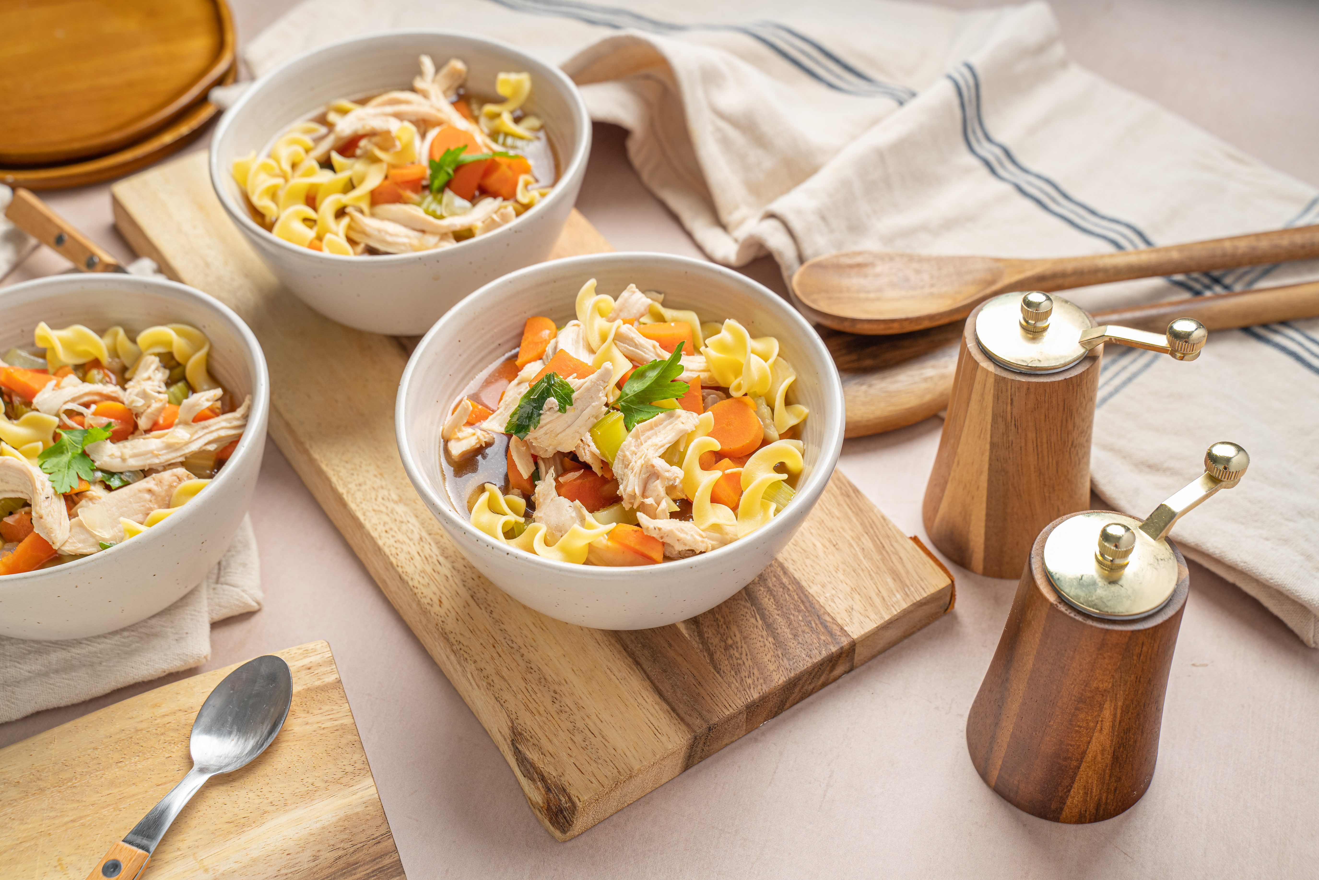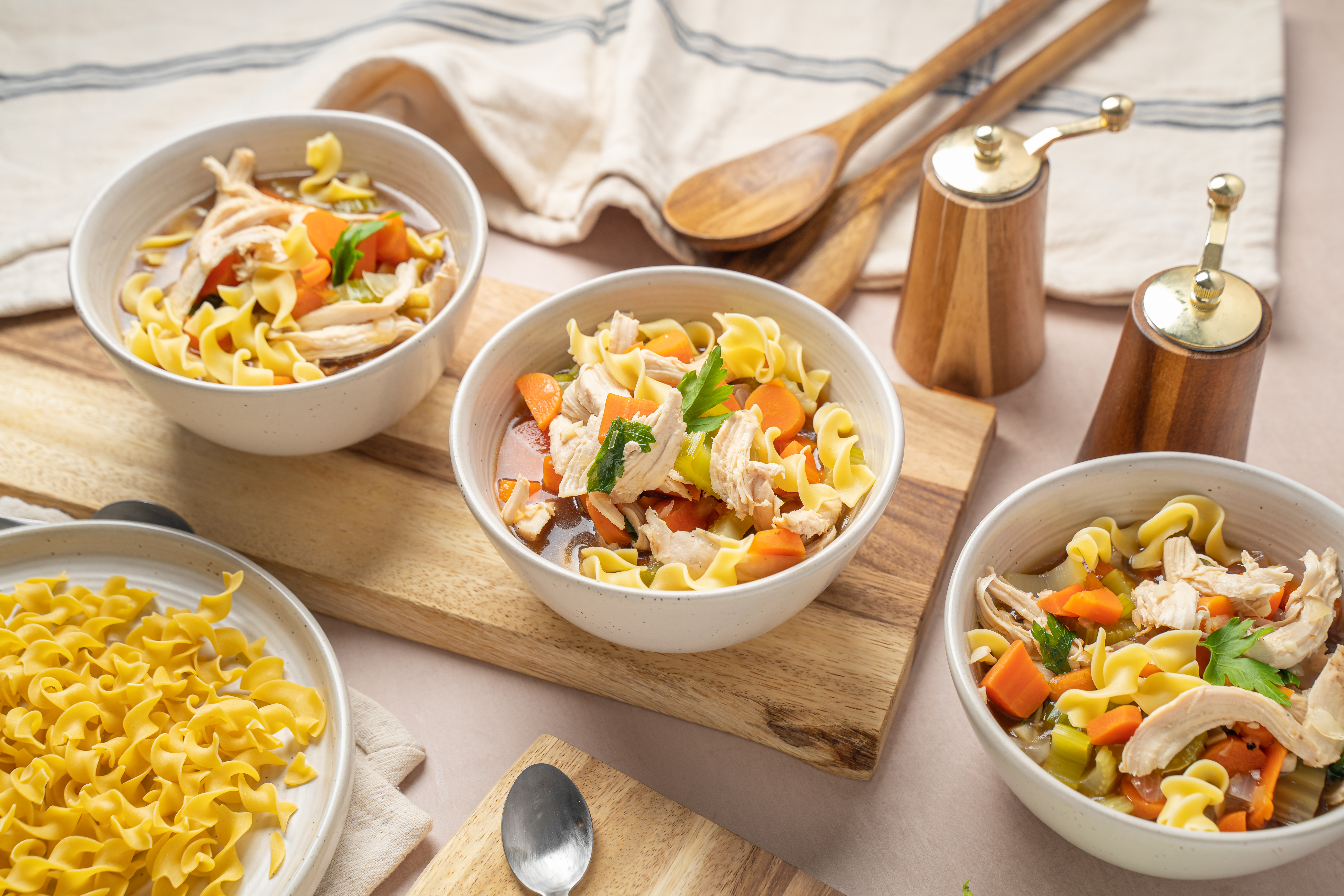 Need something warm and comfy, plus economical to make for lunch? Oodle Noodle Soup is the best way to use all that leftover turkey and make a completely new, delicious meal! Tenderly (and previously) baked turkey is transformed alongside oodles of egg noodles and hearty vegetables to create a humble, yet heartwarming bowl of love. Oodle Noodle Soup will quickly become a turkey-favorite. It's so warm and cozy, we can't blame you!
