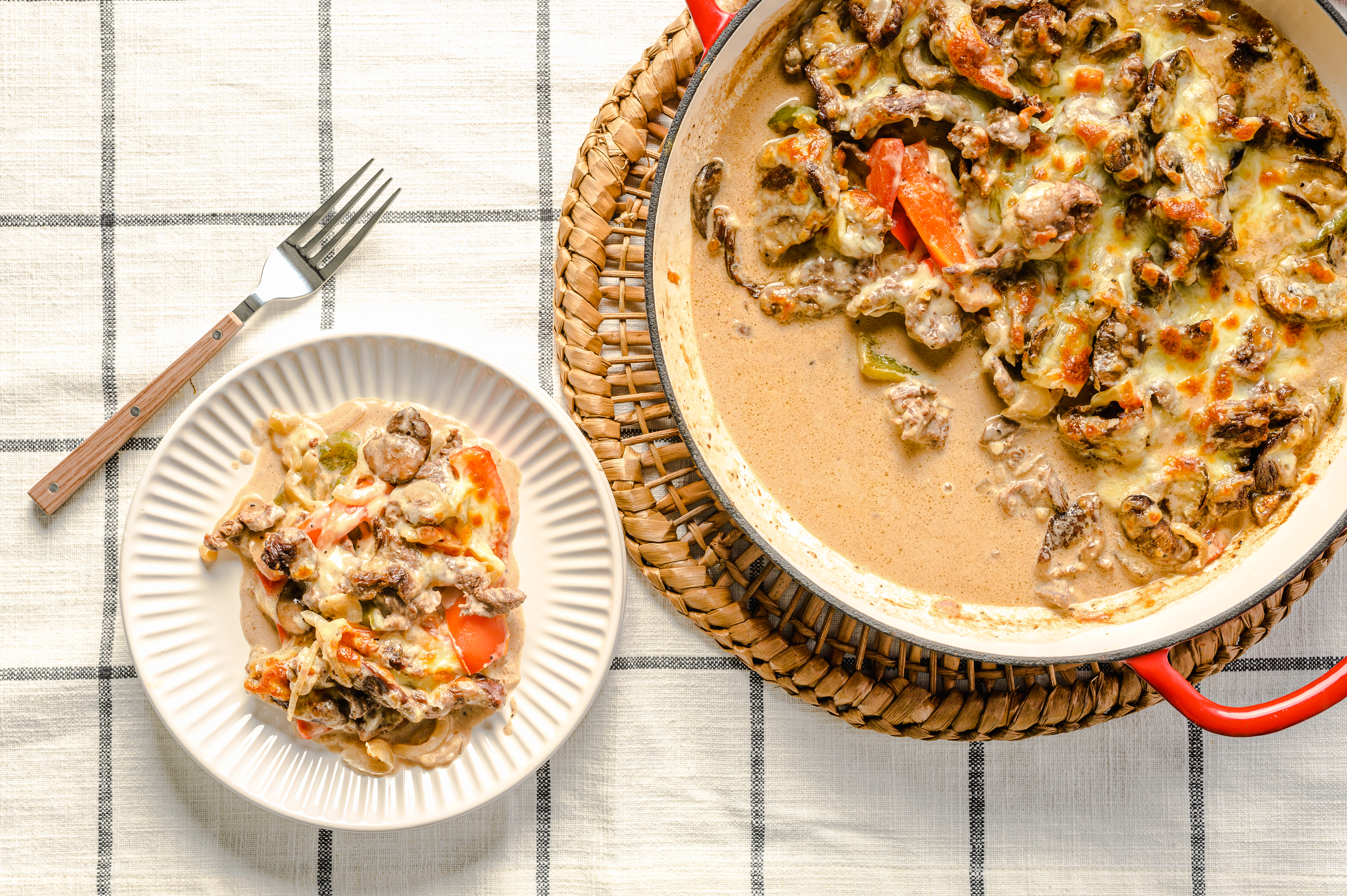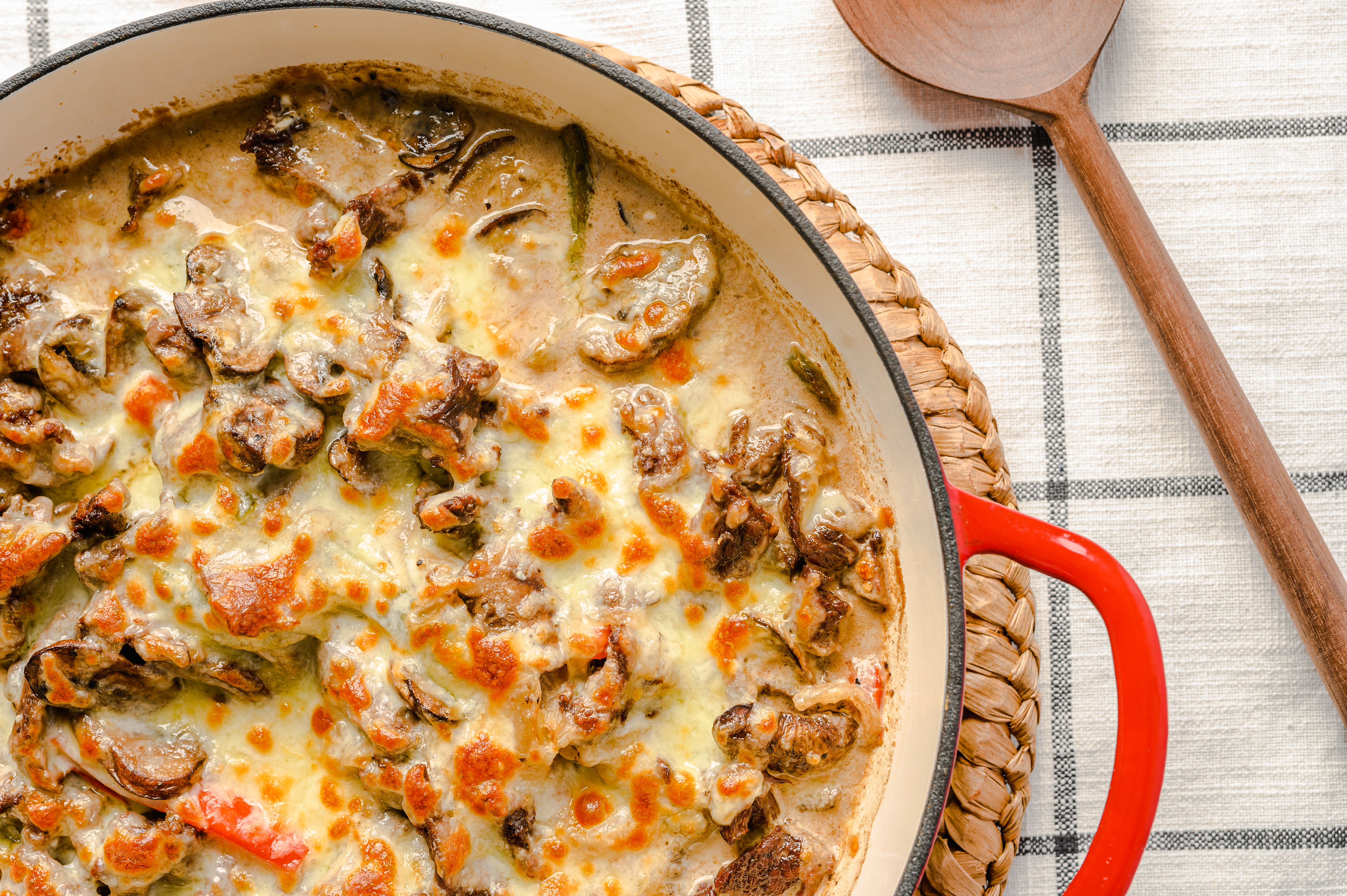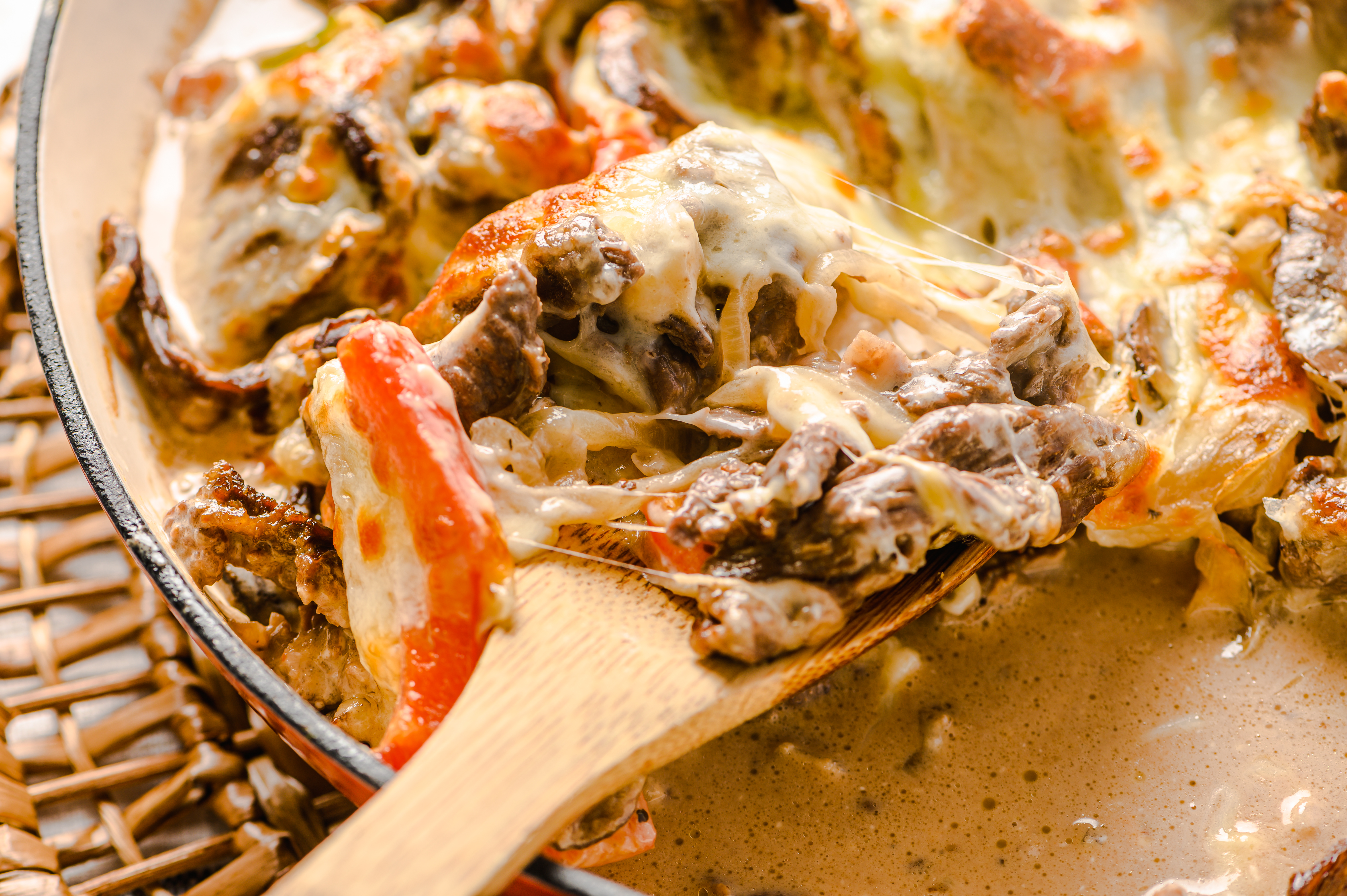 Phil's Cheesesteak Bake is hands-down what we are all looking forward to when we hear the word "cheesesteak." You won't even miss the roll, because Phil really knows his way around the tender, perfectly seasoned strips of ribeye with flavorful onions and bell peppers, all topped with that creamy provolone cheese melted to perfection. The always highly anticipated Phil's Cheesesteak Bake makes food-friendships that last a lifetime!