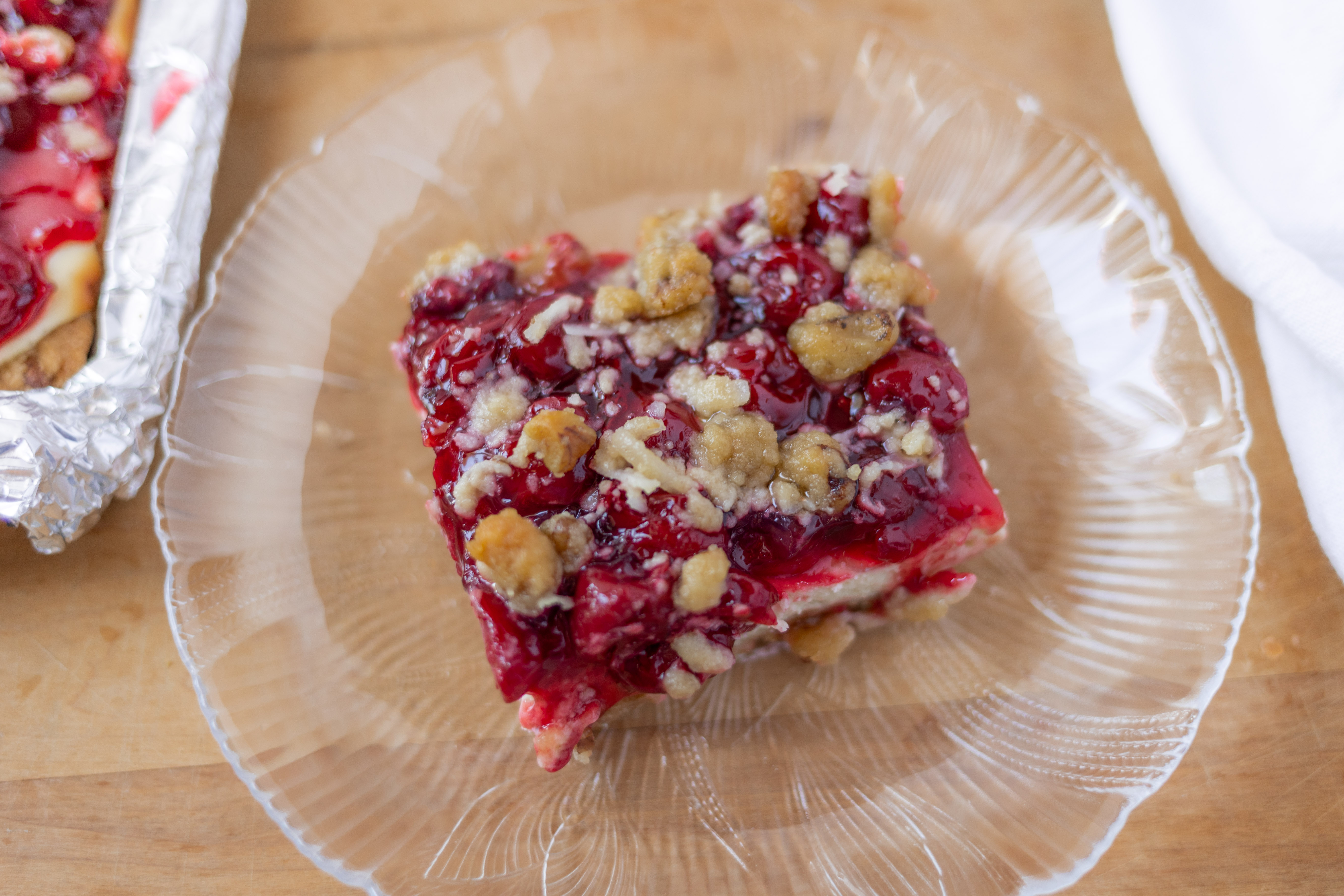 Step 16 -Use the foil to lift the cherry bars from the pan, then cut into bars.
