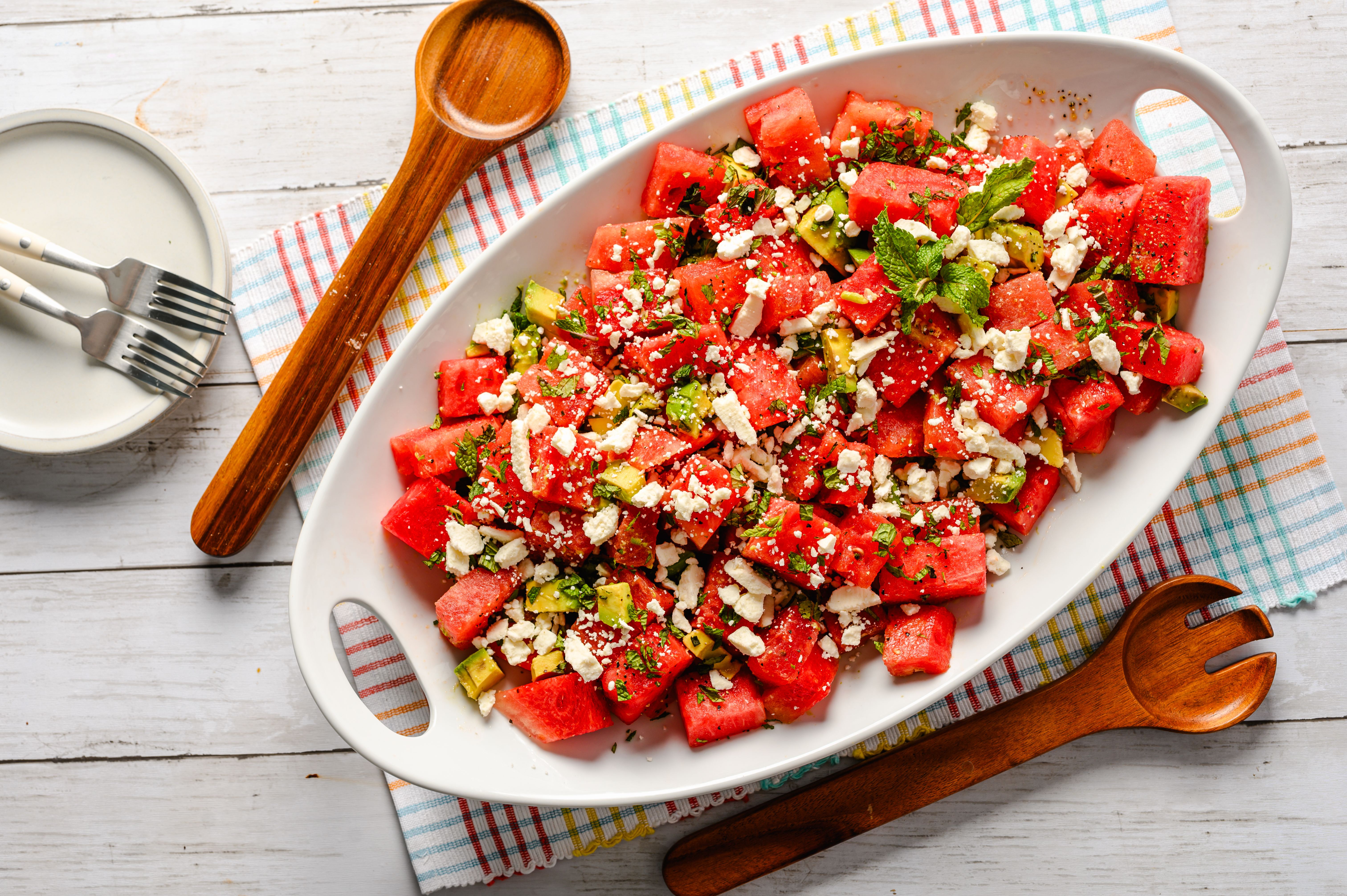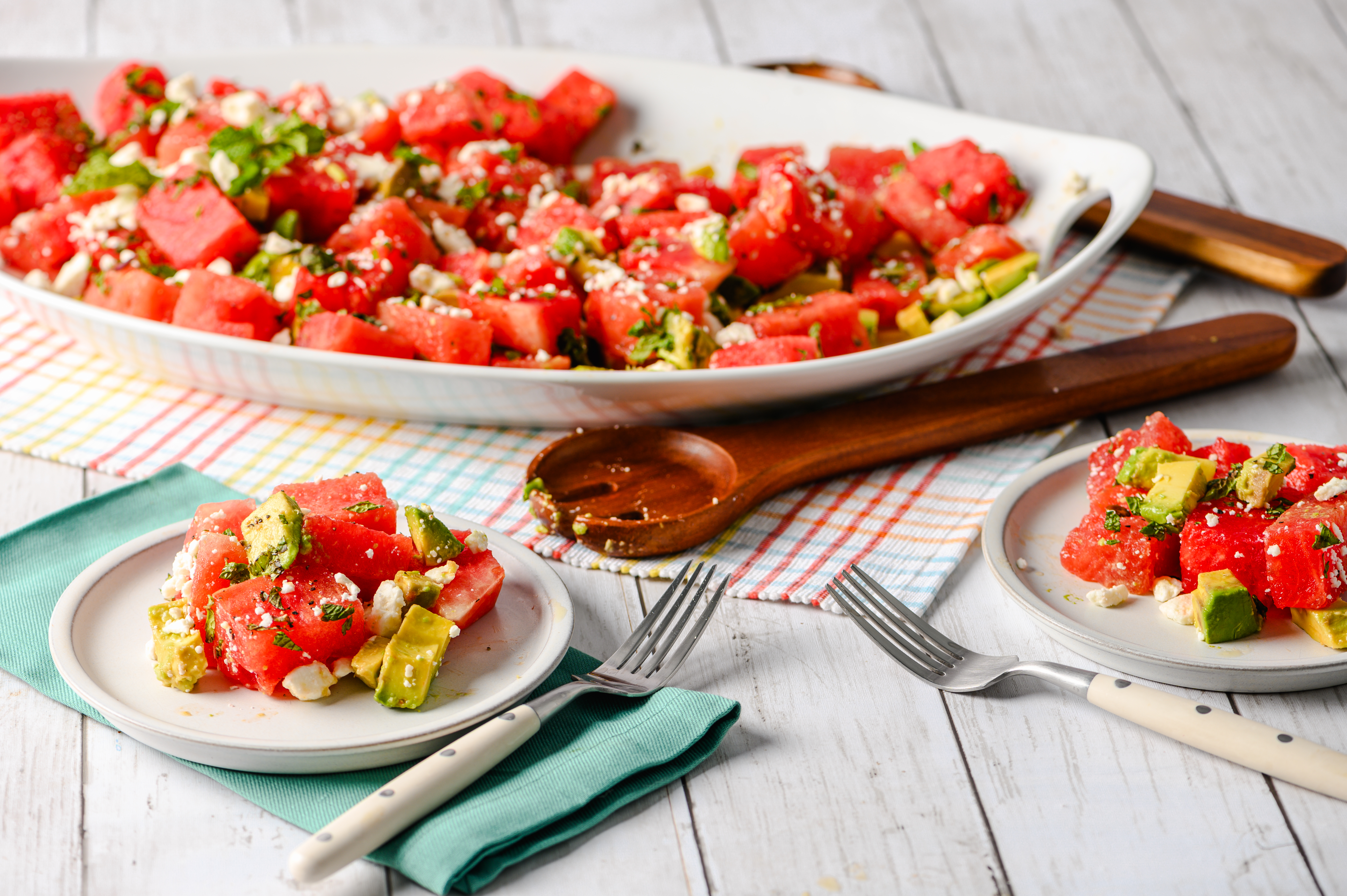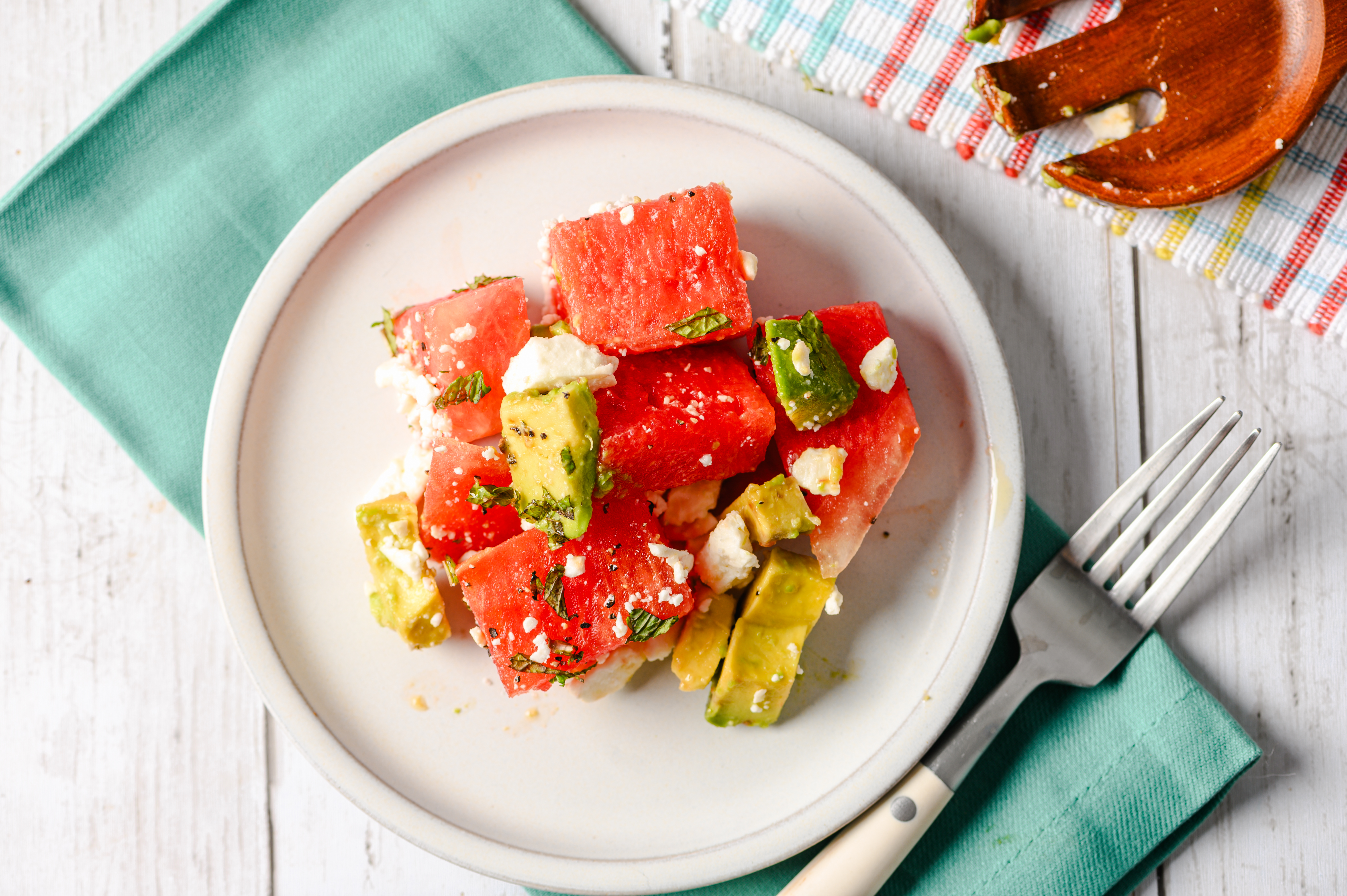 Step 1 -Place the watermelon and the avocado in a large salad bowl.